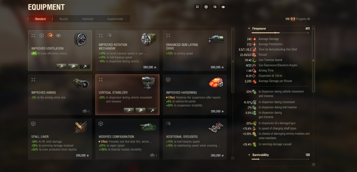 - Vents: Improved Ventilation, commonly referred to as Vents, enhances all crew skills by five percent. This seemingly modest boost has a significant impact on your overall performance. Faster aiming, quicker reload times, improved mobility, and better view range all contribute to battlefield dominance. Vents are especially effective when combined with crew skills and consumables, stacking performance benefits across multiple areas. If you aim to get the most out of your tank and crew, Vents are a must-have piece of equipment.